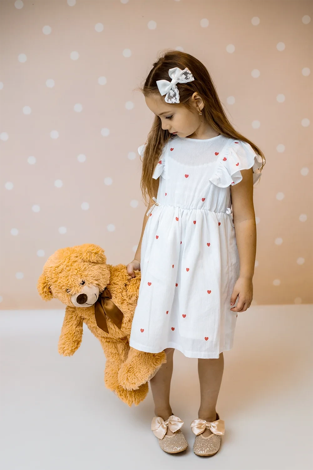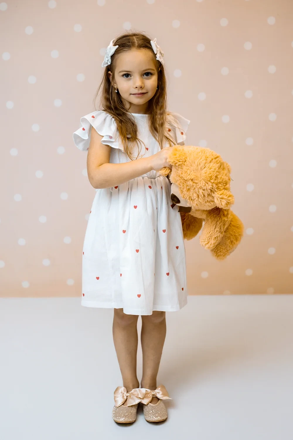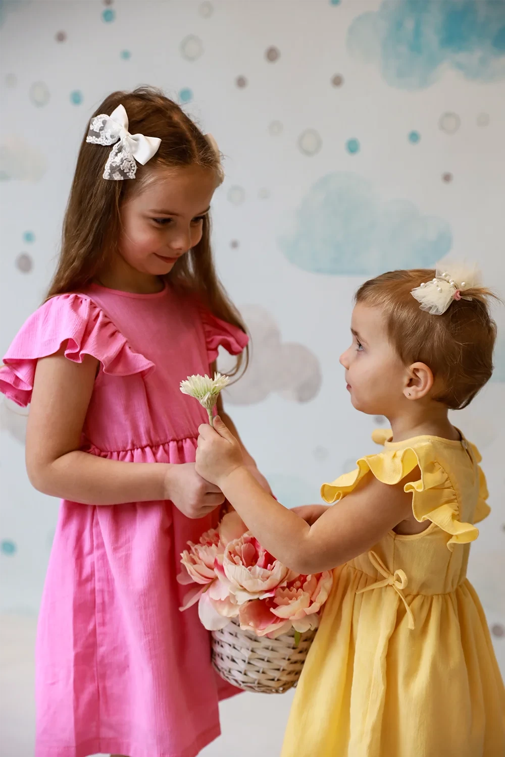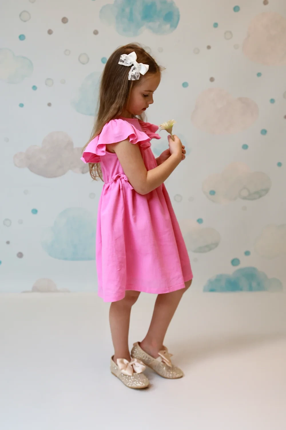 Süßes Kleid mit Rüschendetails aus 95% Baumwolle und 5% Elasthan. Mit femininen Rüschenakzenten in Weiß, Rosa und Gelb. Perfekte Balance zwischen süß und elegant für junge Modefans.