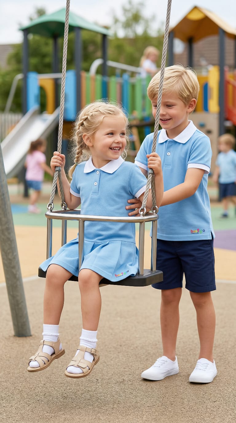 Crafted from a premium blend of 95% cotton and 5% elastane, this dress offers the perfect balance of comfort, durability, and flexibility. The high-quality cotton provides breathability and softness, while the elastane adds just the right amount of stretch for a flattering fit that moves with your child throughout their active day.